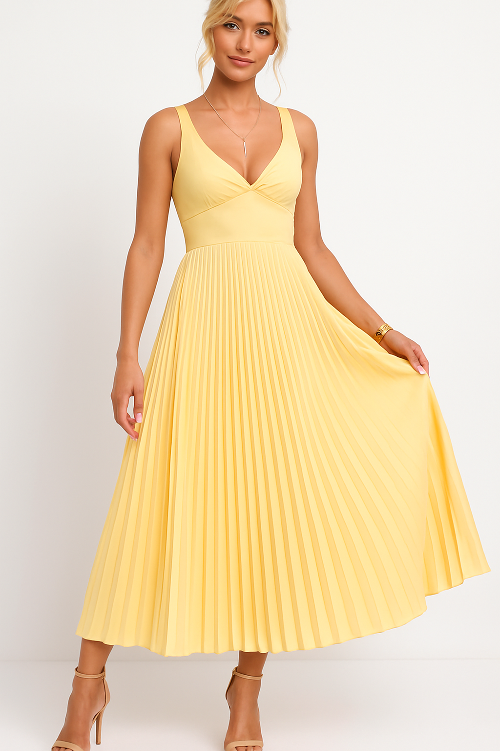 Luna | Robe longue plissée avec encolure en V